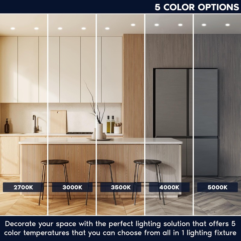 - 5 Color Selectable - Each trimless recessed light comes equipped with a built-in switch, allowing you to select from five distinct color temperatures. Customize your 3" directional LED recessed lights to emit 2700K warm white, 3000K soft white, 3500K natural white, 4000K cool white, or 5000K bright white. Experience real-time lighting options with quality CRI 90 light, eliminating the hassle of testing various LED downlights.