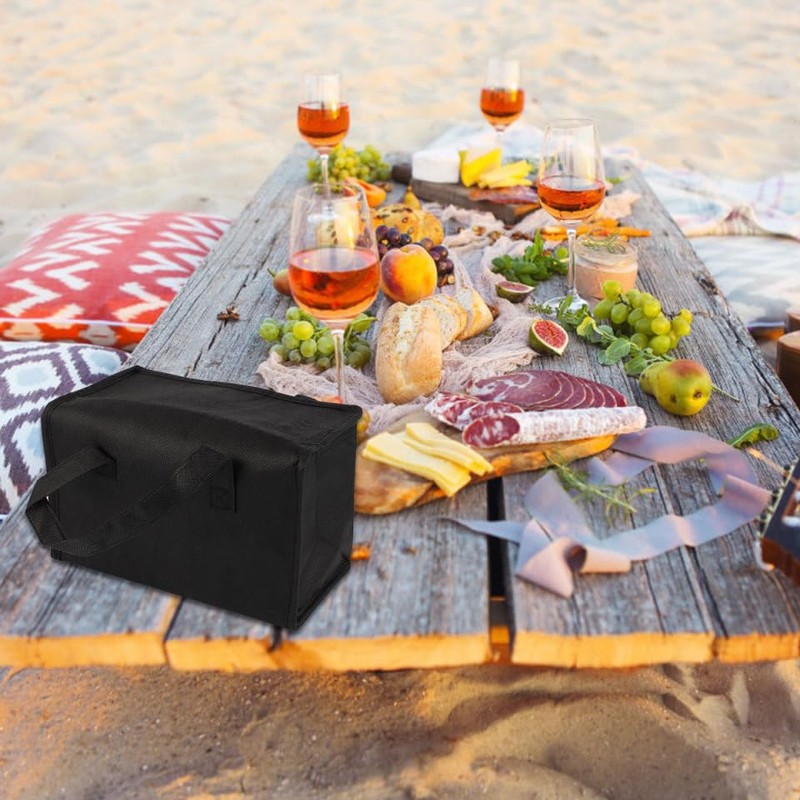 Luxshiny 1pc Non-woven Fabric Lunch Carrier Lunch Container Black Lunch Holder Lunch Organizer Bag