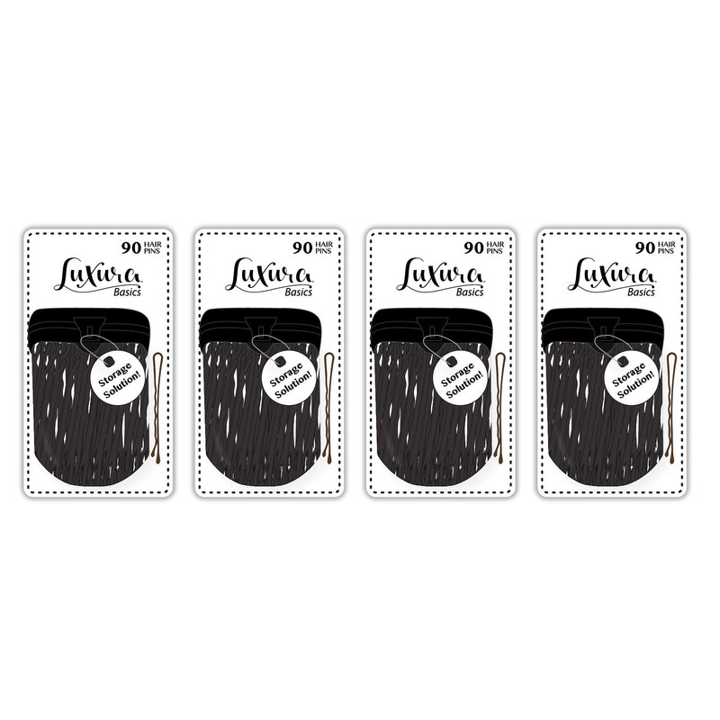 Luxura Hair Pins 90 Count In Reusable Travel Case (Black 4 Pack)