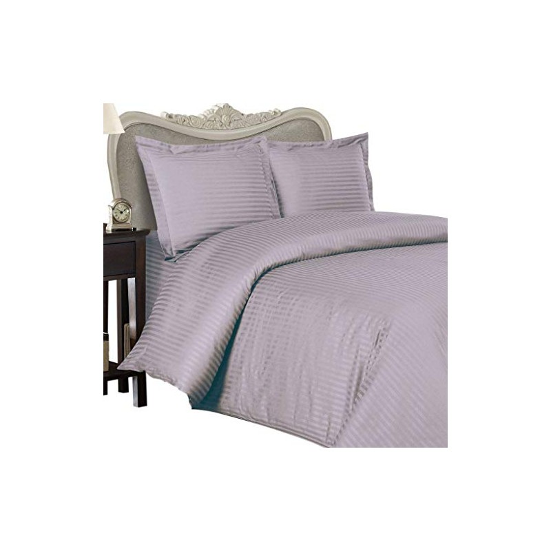 Luxurious LAVENDER Damask Stripe, EASTERN KING Size, 1200 Thread Count Ultra Soft Single-Ply 100% Egyptian Cotton, Extra Deep Pocket Four (4) Piece Bed Sheet Set with 2 Pillow Cases 1200TC