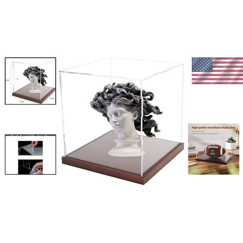 Luxury Acrylic Display Box with Solid Wooden Base - Organize Toys & Collectibles