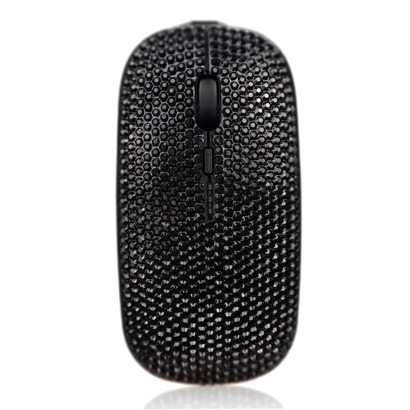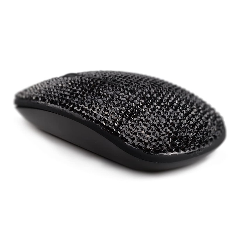Luxury Bling Dazzling Rechargeable 2.4G Wireless Mouse Covered with Crystal Diamond Rhinestone - Black
