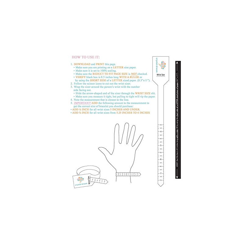 Sizing: We offer different sizes - please order according to child's age and wrist size. Measure child's wrist exactly and add a 1/4 to 1/2 inch to the circumference and order accordingly. For example, if child's wrist measures 5 inches - order the MEDIUM+.