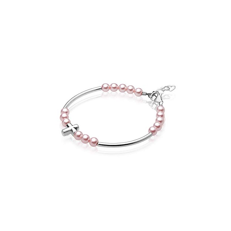 Luxury Child Banglet Bracelet with Silver Cross and Pink Pearls (BD25_M)