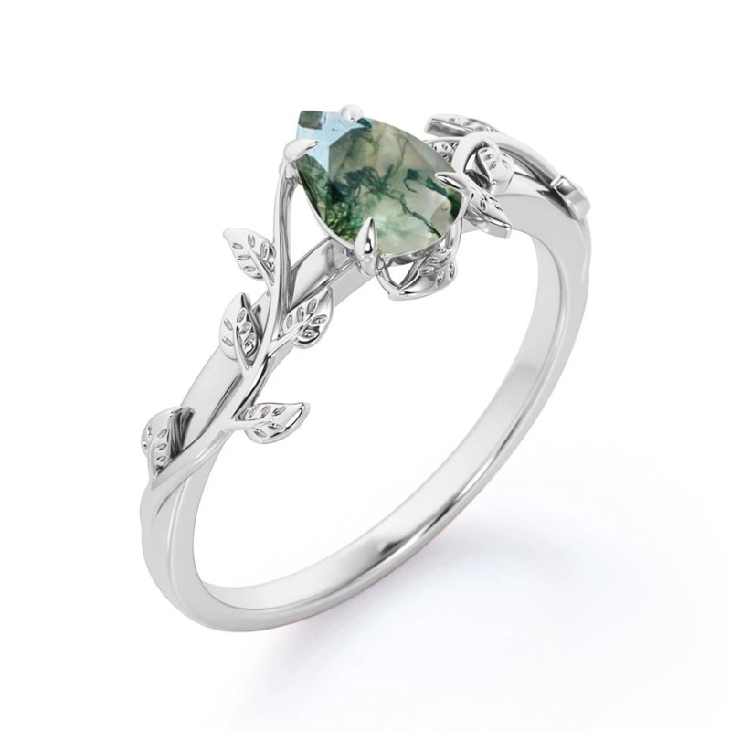 - đăNatural Moss AgateăEvery moss agate is natural, No two moss agate stones are the same, making each one unique. It is normal that the finished ring won't be the same as our picture. Moss agate inlaid on sterling silver ring brings you a different visual experience.