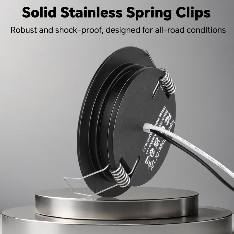 Muy ligero, montaje estable con fuertes clips de resorte. Es resistente a las vibraciones y acabado limpio después de la instalación.