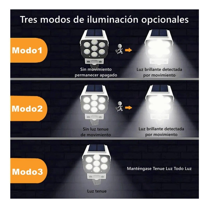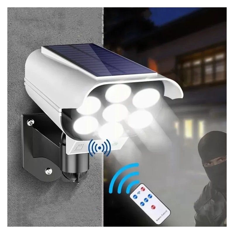 Luz Solar Control Remoto 77led 3 Modos De Falsa Cámara