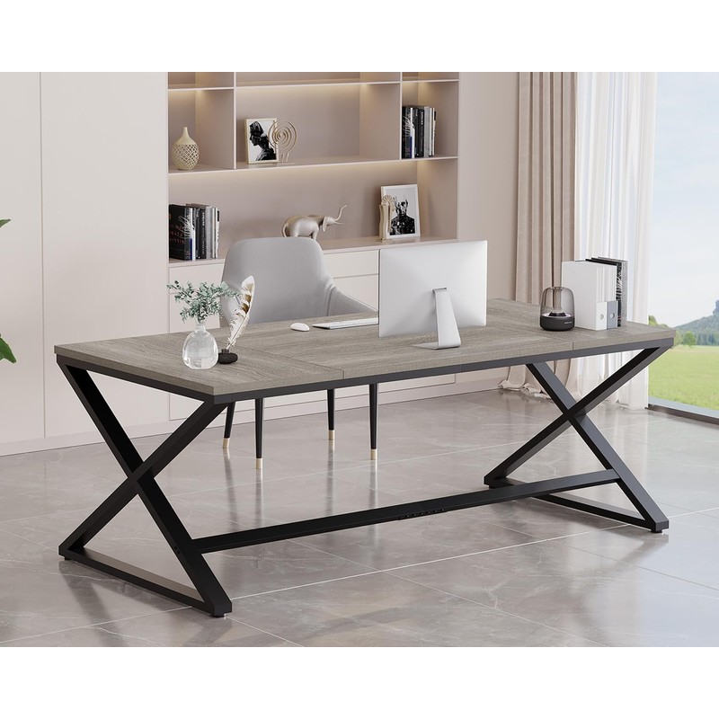 The modern design features high-quality Light Grey oak MDF and sturdy black X-shaped metal legs, ensuring the large office desk maintains an elegant appearance over long-term use. The Light Grey large desk unique design is not only beautiful but also leaves a lasting impression on your colleagues and clients.