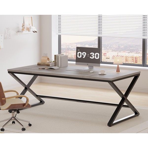 - 【Unique Simple Appearance】: The modern design features high-quality Light Grey oak MDF and sturdy black X-shaped metal legs, ensuring the large office desk maintains an elegant appearance over long-term use. The Light Grey large desk unique design is not only beautiful but also leaves a lasting impression on your colleagues and clients