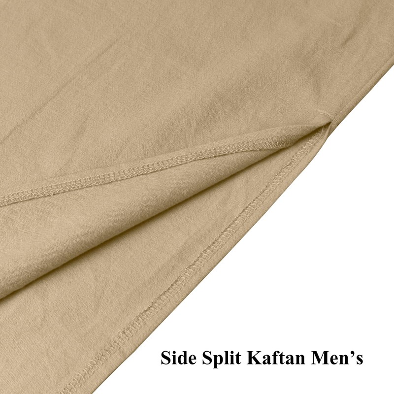 LVCBL Caftan Men's Arab Thobe Men Long Sleeve Side Split Kaftan for Men Muslim Henley Robe Men Khaki 3XL