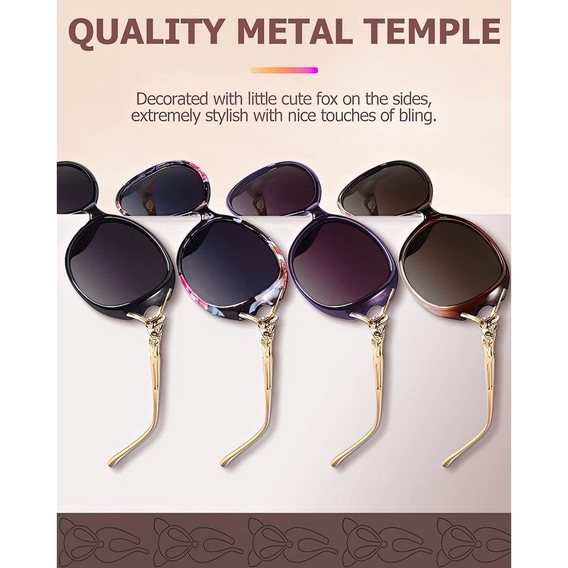 - Trendy Vintage Design - These stylish polarised sunglasses women are designed with a classic 60s Jackie O inspired style and feature a large frame size to provide maximum coverage and protection for your eyes, and the golden metal temples add a trendy touch to the overall design.
