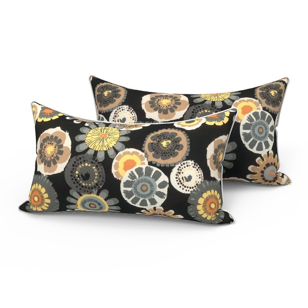 LVTXIII Set of 2 Outdoor Lumbar Pillows for Patio Furniture with White Piping, 12"x20" Fade Resistant Patio Lumbar Pillows with Inserts for Home Coach Sofa Use, Black Yellow Crosby