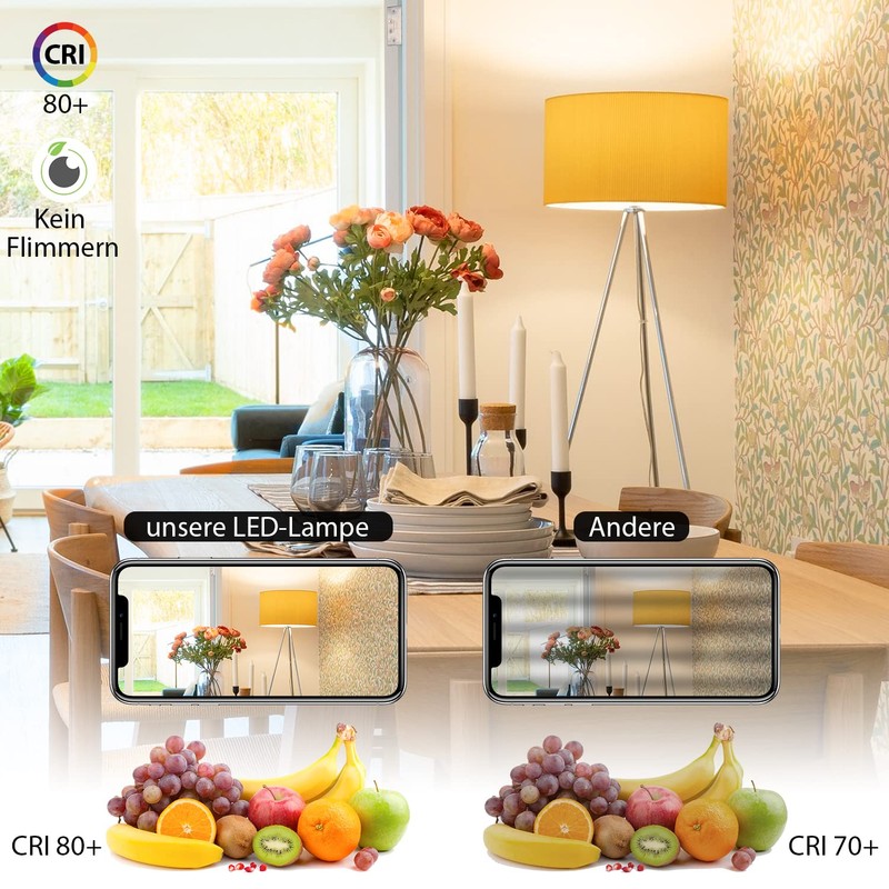 - Hohe Farbwiedergabe: Der CRI von LVWIT LED 60W Leuchtmittel ist immer h?her als 80, Farben werden daher unverf?lscht und auf natrliche Weise wiedergegeben;