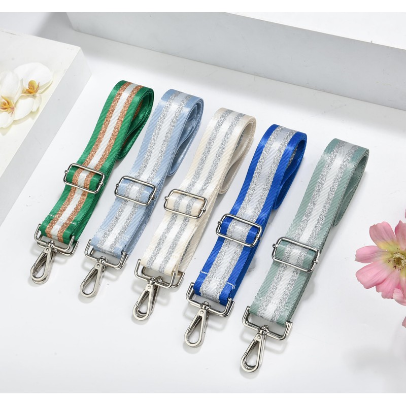 - [High Quality Materials]Crossbody purse strap made from high quality fabric sturdy metal buckles. No need to worry about being scratched or snags,the two long silver or gold metallic stripes in the middle are very shiny.