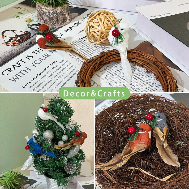 - Material:Berry artificial bird body made of foam, beak and claws are plastic, covered with real feathers, wings and tail made of real feathers, fine workmanship, durable, environmentally friendly and non-polluting, loved by friends.