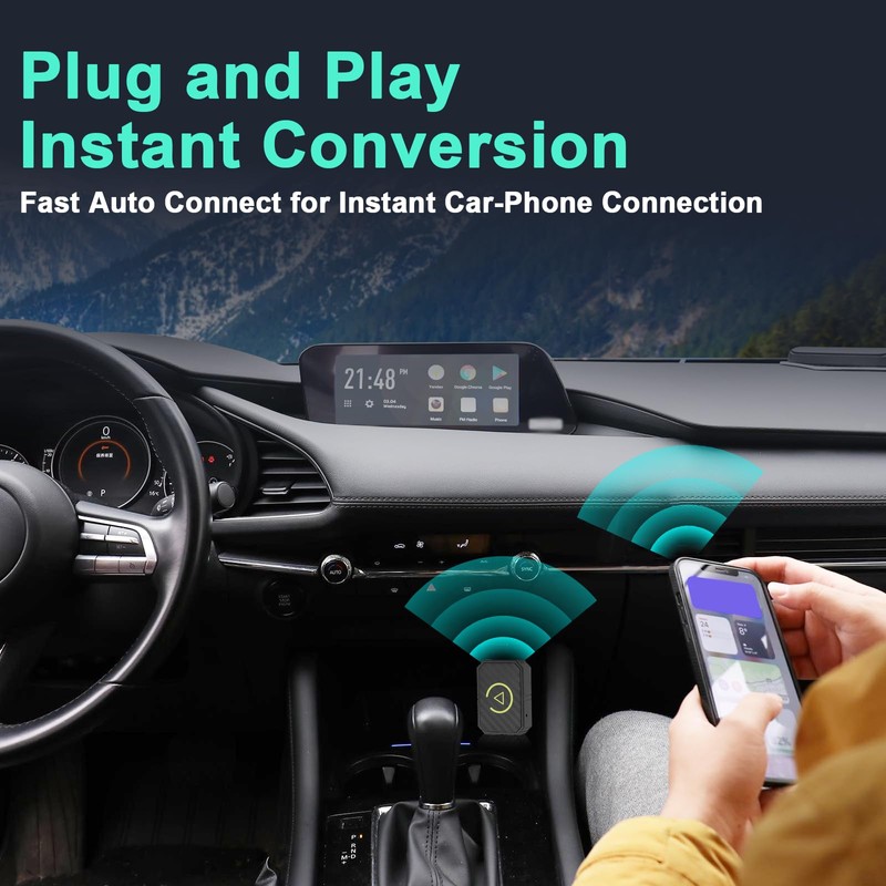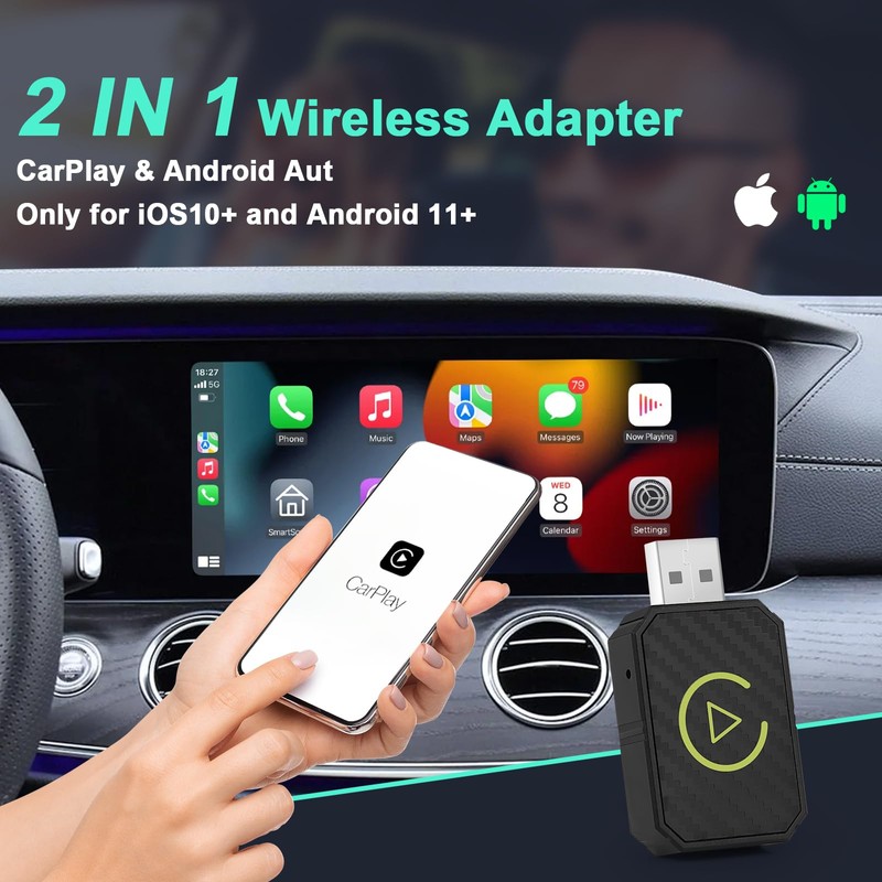 • Android Car Wireless Adapter: This 2-in-1 wireless adapter turns a conventional wired Android car or CarPlay connection into a wireless connection. Wireless carplay adapter that ensures fast responsiveness and a stable connection. The adapter automatically connects to the smartphone when the car is started