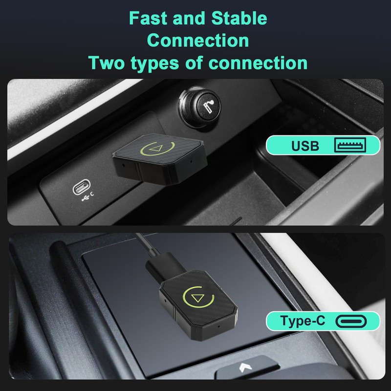 - Plug and Play: Simply plug the adapter into your car's USB or Type-C port to start CarPlay and Android car quickly and without complicated setup.