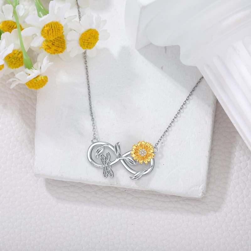 LWXIE Diamond Sunflower Infility Necklace 925 Sterling Silver Dragonfly Infinity Pendant Necklace Dainty Jewelry Gifts for Women