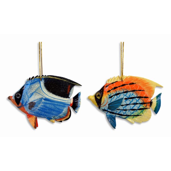 LX Hand Painted Ocean Creature Ornament Tropical Fish 4" (Set of 2)