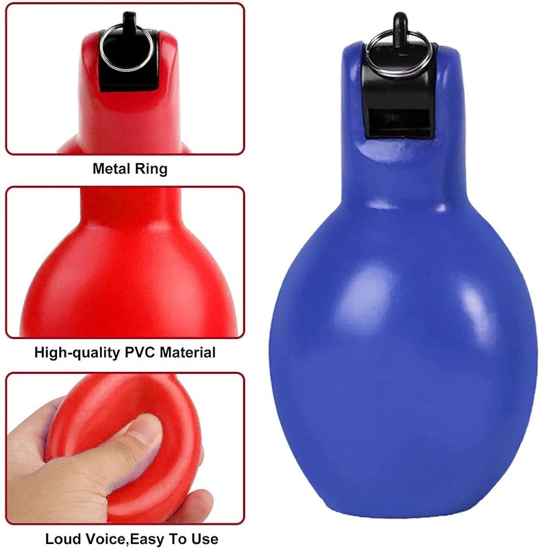 - Material : Ball is made of PVC material, whistle is made of PP material and the loop on top is metal. This hand squeeze whistle can withstand frequent use, easy to clean, and durable, so you can use it with confidence.