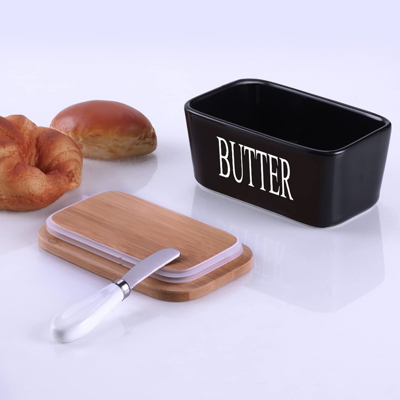 - Multifunctional Design - Built in with a stainless steel butter knife, ensure the easy spread of butter. The removable sealing ring and non-stick porcelain are made for easy cleaning. When you pick up the lid, it won't be messy and make it easier to clean.