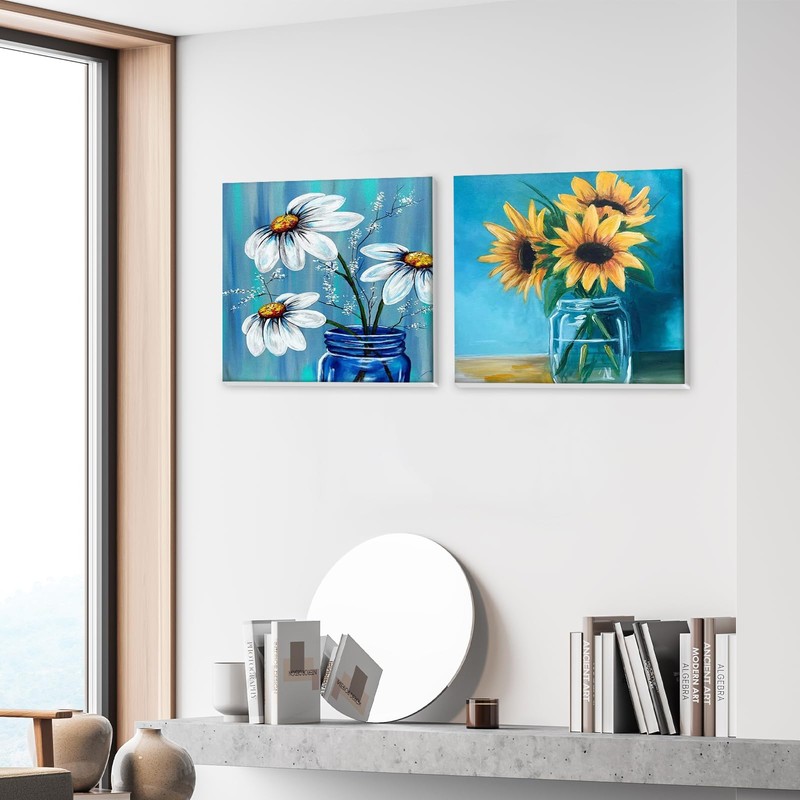 Lxmsja 2 Pack Flowers Paint by Numbers for Adults Beginner with Frame Canvas, Painting by Numbers Kits for Adults, Arts & Crafts Adult Paint by Numbers Kits Gifts for Women Home Decor, 8x8in