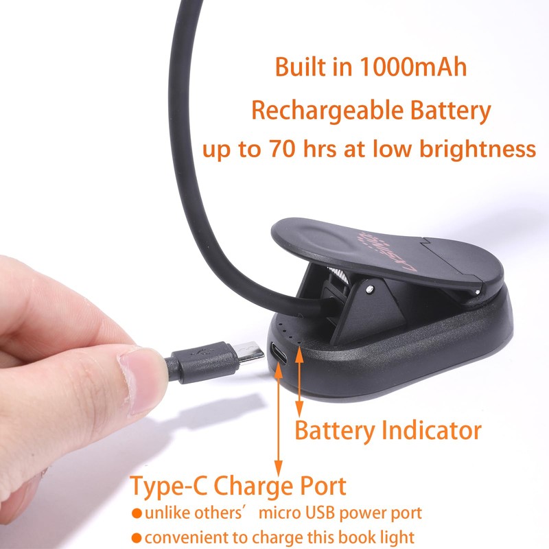 - USB-C Wiederaufladbar & LanglebigEin umkehrbares USB-Typ-C-Kabel ist im Lieferumfang enthalten, um das Aufladen im Vergleich zu anderen Micro-USB-Kabeln zu erleichtern. Bis zu 12 Stunden kraftvolle Lesezeit und eine konstante Helligkeit dank des mitgelieferten hochwertigen, wiederaufladbaren 1000mAh-Akkus. Schnellladefunktion in 2 Stunden.