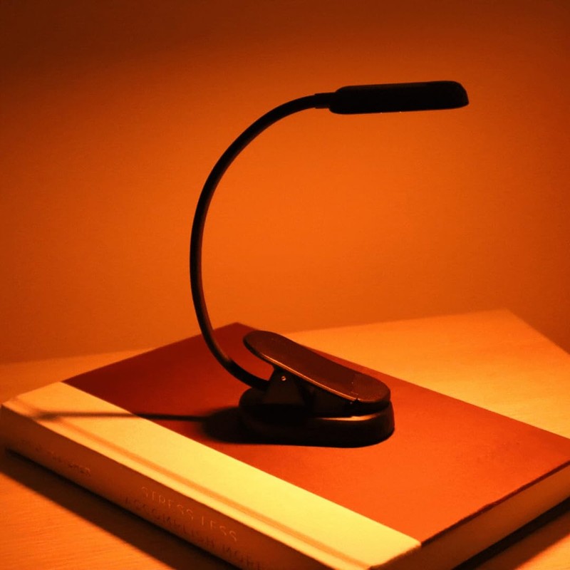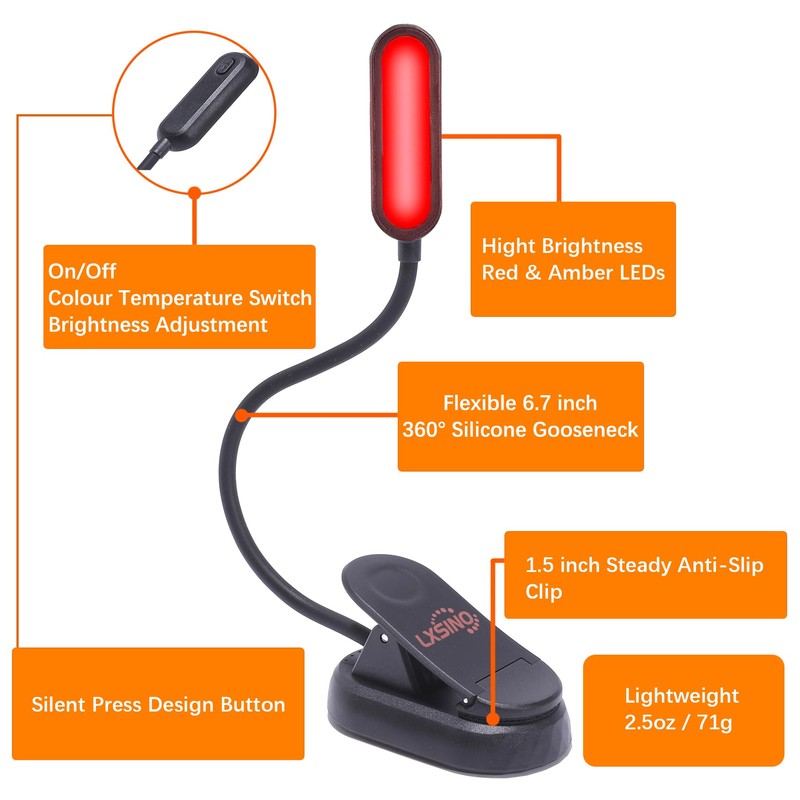 Lxsino Bernsteinfarbene und rote Buchlichter zum Lesen im Bett C Bernstein (1600 K)/Rot (625 nm) C 8 LEDs, mehr als 30 Stunden langlebig, USB-C-Aufladung, wiederaufladbare flexible Clip-on-Leseleuchte