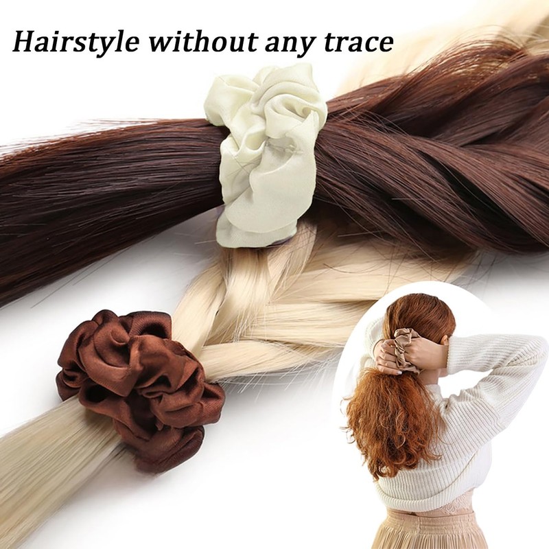 - Pemium satin material: this scrunchie is made of high-quality satin fabric, smooth, soft and shiny. Gentle on your hair, minimising the chance of pulling and leaving no marks on your hair.