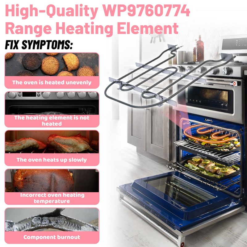 • 【Premium Durable Material – Built to Last】LXun WP9760774 Whirlpool oven broil element is crafted from high-quality materials for exceptional durability and heat resistance. Engineered to withstand extreme oven temperatures, this WP9760774 oven heating element ensures reliable performance without premature wear. Say goodbye to frequent replacements—this robust WP9760774 oven convection element delivers consistent heat for perfectly cooked meals every time.