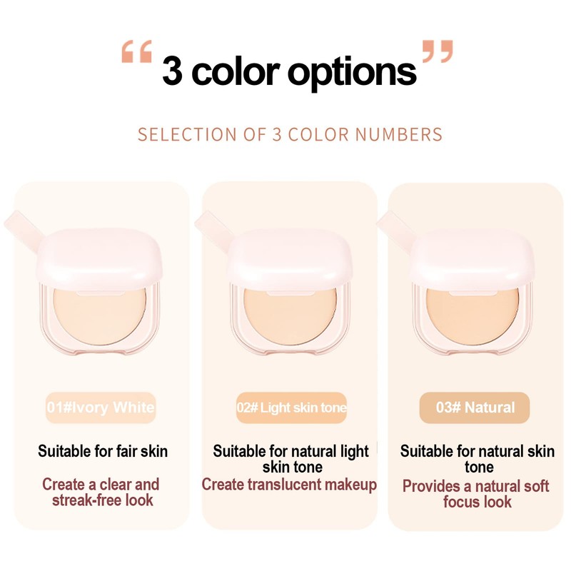 - 【 Oil control effect】: This setting powder uses high-pressure compression powder technology, which can effectively absorb facial oil, keeping the skin clean and fresh, while also controlling facial shine and making the makeup long-lasting and beautiful.