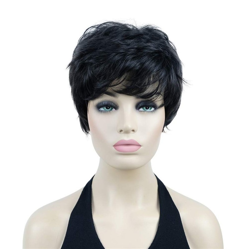 Lydell Short Straight Fluffy Full Synthetic Wigs with Bangs for Women Girls Darkest Brown Black