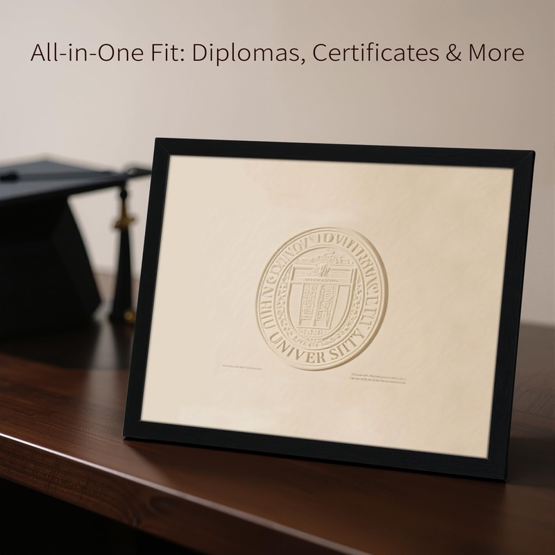 - Essential 8.5 by 11 picture frame: The perfect diploma frame and certificate frame, fitting degrees and awards as graduation gifts instantly—no trimming needed for letters or A4 sheets.