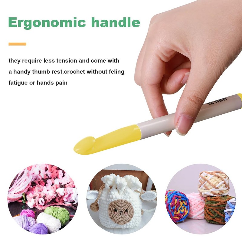 The crochet hook is made of high quality ABS plastic, well made, durable and convenient to use. This classic large crochet hook features a grippy surface for perfect hook guidance and a specially aligned groove for smooth thread flow.