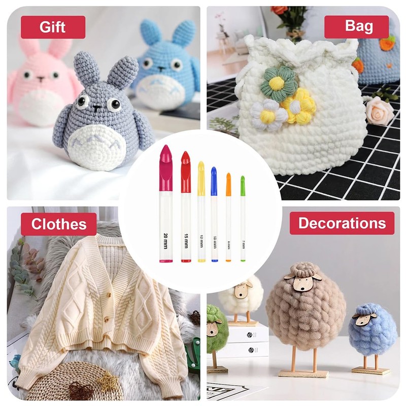 LYITZW 6 Piece Large Crochet Hook Set, Longer Crochet Hooks with ABS Crochet Head, TPR Crochet Handle, Ergonomic Chunky Crochet Hook for Thick Wool, Carpets, Bulky Yarn Project (7/8/10/12/15/20 mm)