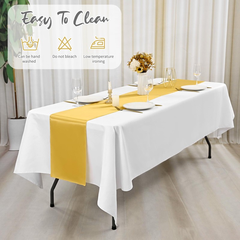 - 【Multiple Occasions】Gold Satin table runner Suitable for both outdoor and indoor events. Classic colors to meet your different subject of events like weddings, banquets, birthday or dinner party, bridal or baby shower, Christmas, and other various parties.