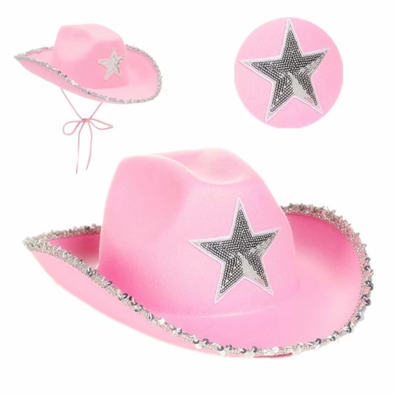 - This PINK Sequin Cowboy Hat is a fun party accessory! You can't go wrong with this hat and it's sure to compliment your next costume! Great for cowboy and cow girl parties!