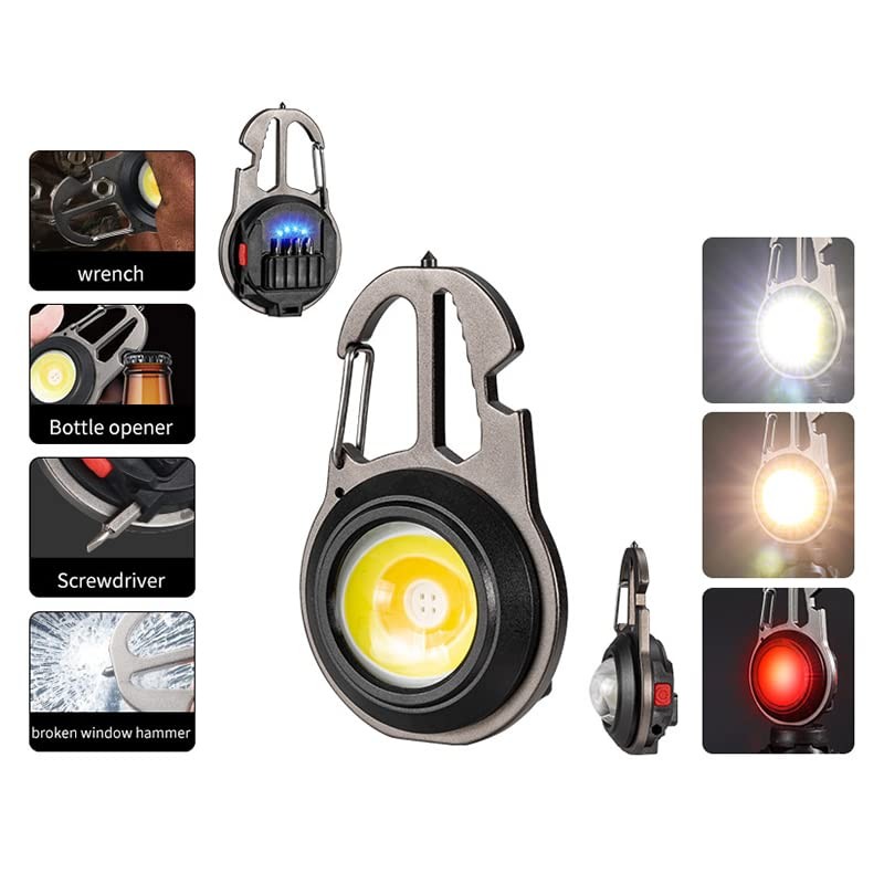 • [7 lighting modes] The keychain light is designed with 7 adjustable brightness modes: white high/white low/yellow high/yellow low/red high/red strobe and long press on the power button for 3 seconds to reach maximum brightness.