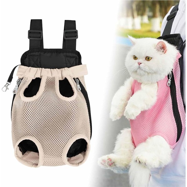 Lynkiss Pet Dog Sling Carrier,Breathable Mesh Portable Travel Safe Pet Sling Shoulder Bag Carrier with Adjustable Non-Slip Shoulder Strap Portable Cat Travel Backpack,A Beige,Small
