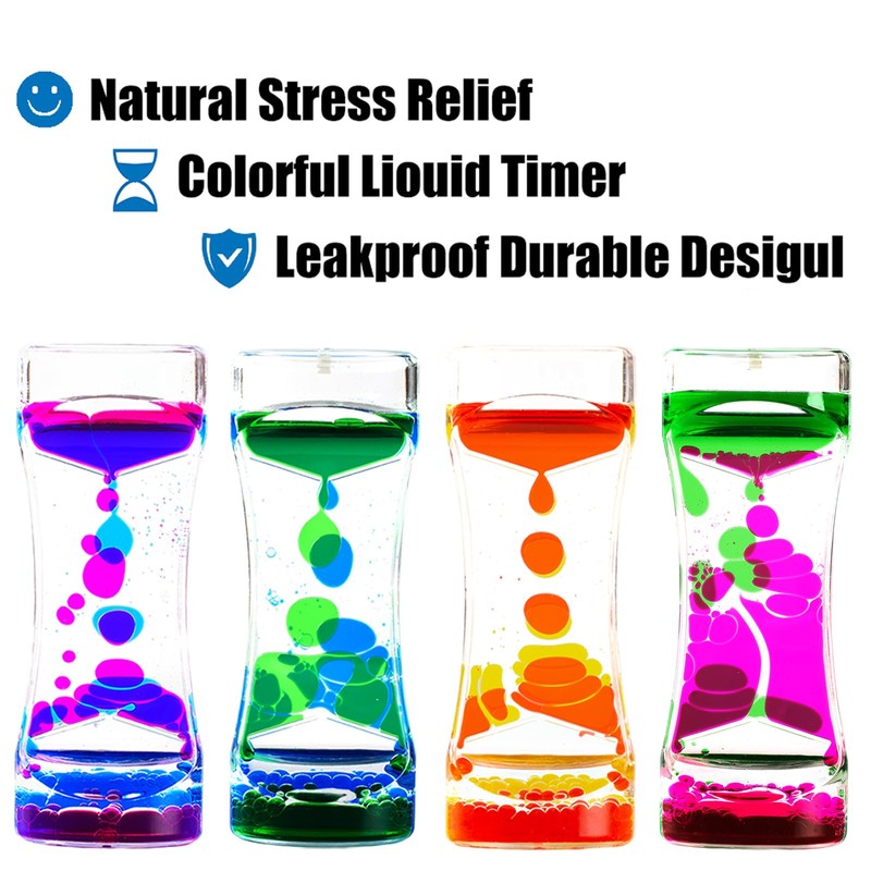 - Perfect Liquid Bubbler Timer Toys- A gentle fidget toy that pleases the eye and eases for comfort. It relaxes with its colorful droplets flowing to the bottom. Sure, our liquid bubblers can be gifted to your kids for hours and hours of fun, but they can also be used by adults to manage their stress or even as decorative pieces to give your office desk an awesome look.