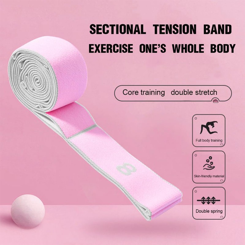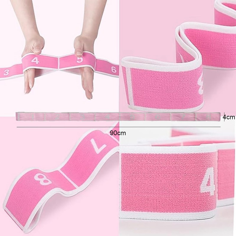 - 4. With its multi-piece design and highly elastic fabric, our stretch band is suitable for children and adults. Its 8 rings allow easy length adjustments to meet different stretching needs.