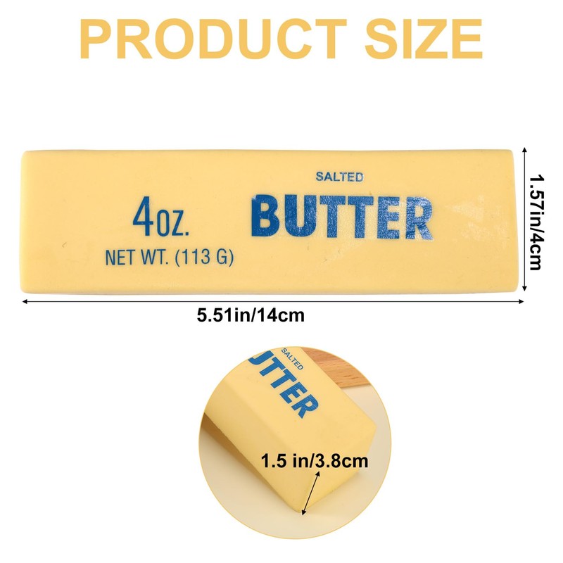 - Fun Design: Taking salted butter stick into inspirations, we designed and crafted this slow rising butter toy. It has blue food volume labeling printing that looks like a real salted butter stick, fun and vivid.