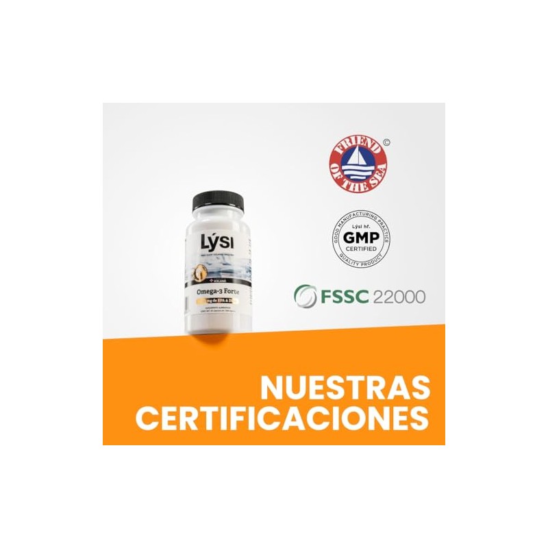 Lysi Omega-3 Forte 60 Capsulas, 1030 mg de EPA DHA, Aceite de Pescado 100 Salvaje y Sustentable, Importadas de Islandia.