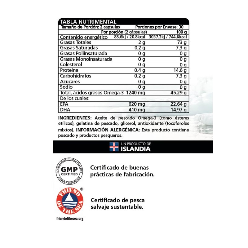 🌟 ⭐ Lysi Omega-3 Forte 60 Capsulas, 1030 mg de EPA+ DHA, Aceite de Pescado 100% Salvaje y Sustentable, Importadas de Islandia. ⭐ 🌟