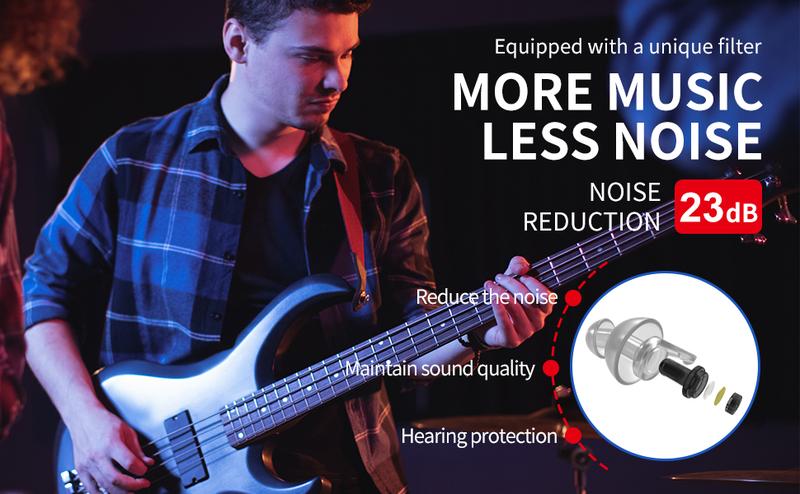 - Clean Sound Quality: High-fidelity music earplugs, reduce noise, preserving high-quality music and minimizing the risk of hearing loss, tinnitus, and anxiety.