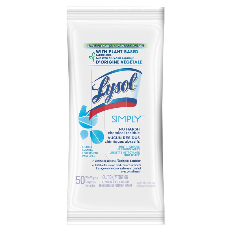 - Lysol Simply multi-purpose cleaning Wipes are made with plant based lactic acid that eliminates bacteria!