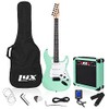 LyxPro 39 inch Electric Guitar Kit Bundle with 20w Amplifier, All Accessories, Digital Clip On Tuner, Six Strings, Two Picks, Tremolo Bar, Shoulder Strap, Case Bag Starter kit Full Size - Green
