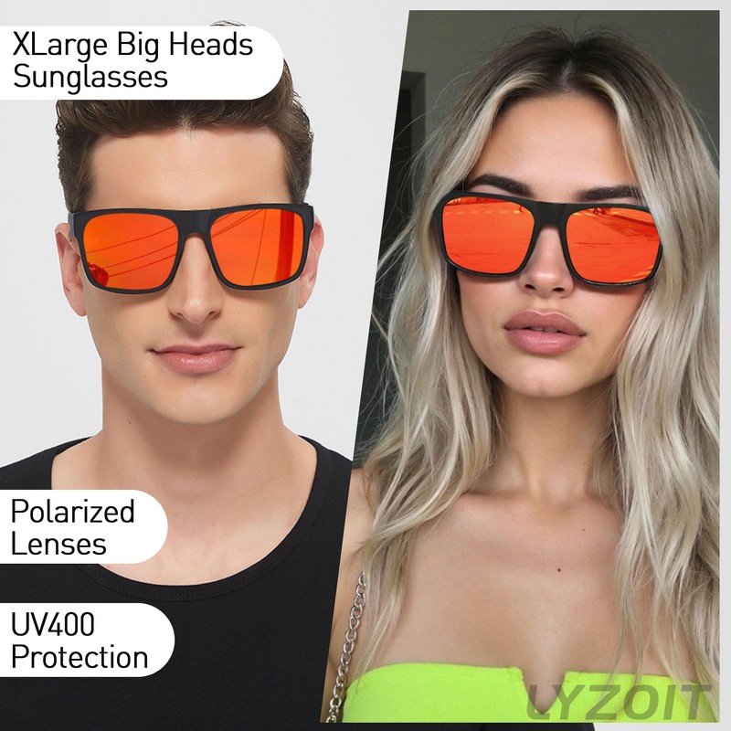 - XL Sunglasses for Big Heads: LYZOIT square sunglasses made with a wide frame sunglasses design, they cater to those in need of sunglasses for extra large size. These mens xl blackout sunglasses provide both maximum comfort and durability.
