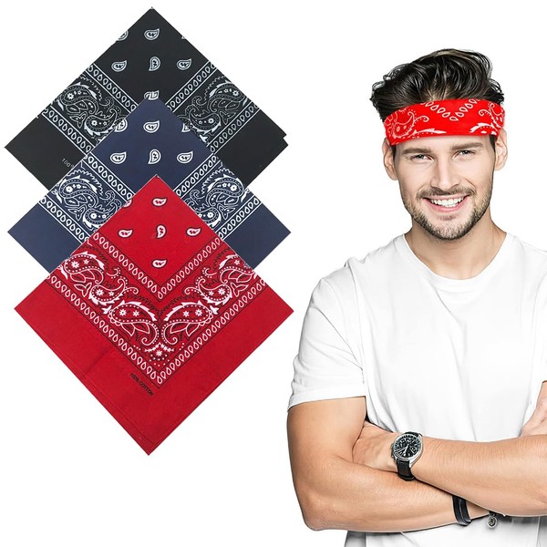 LZKHEH Set of 3 Bandanas for Men and Women, Nicki Scarves as Headscarf or Neckerchief, Unisex Binding Scarves as Headwear, Hair Scarf in Paisley Pattern, multicoloured
