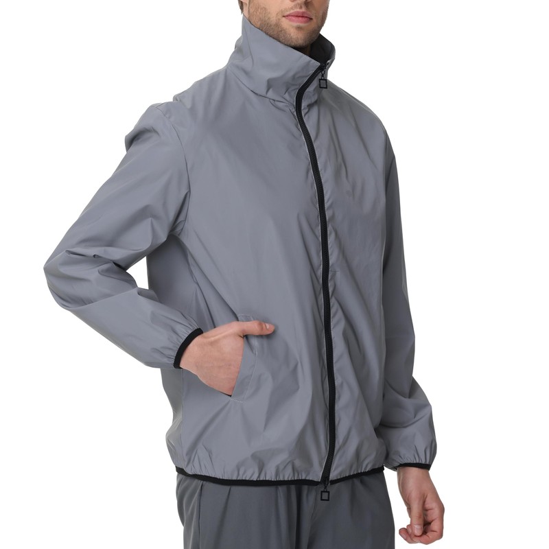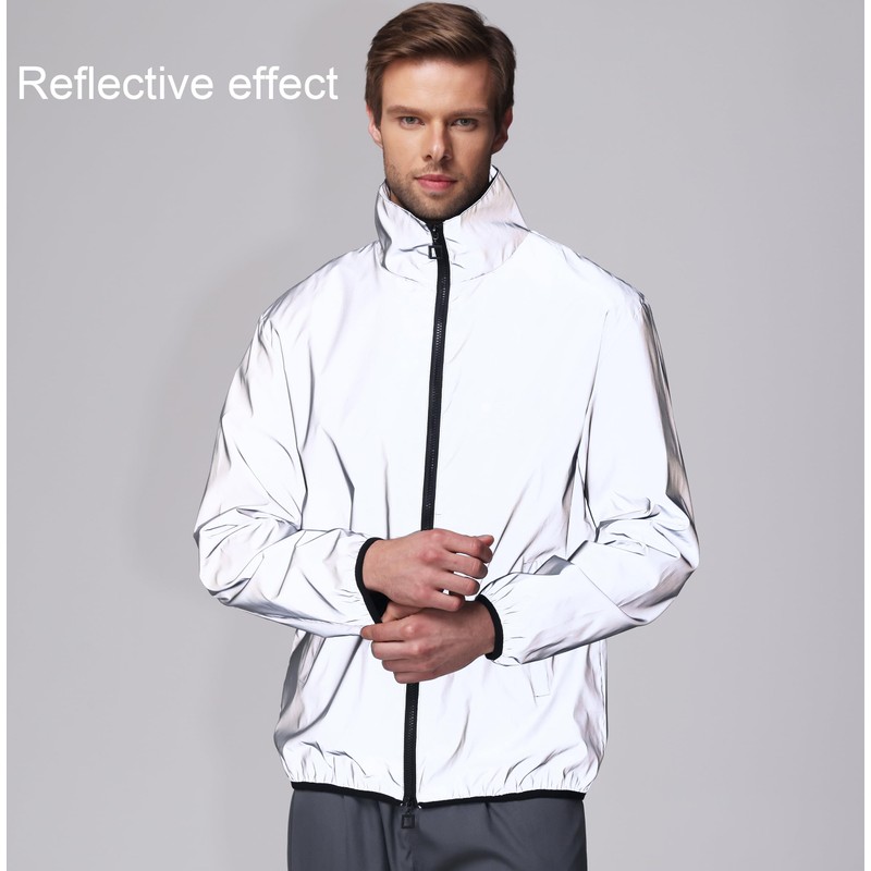 LZLRUN Mens Reflective Jacket Windbreakers Rave High Visibility Holographic Coat Outfit (US, Alpha, X-Large, Regular, Regular, Grey)
